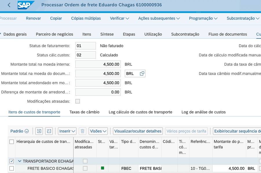 Passo 9. Agora é executar o cálculo na sua ordem de frete!