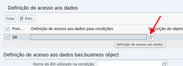 Passso 4. Clique no botão “Definição de acesso aos dados” para definirmos os parâmetros de entrada da nossa tabela de decisão. Para quem não está familiarizado com o conceito de tabela de decisão… ela tem a mesma característica de uma tabela de sequencia de acesso.