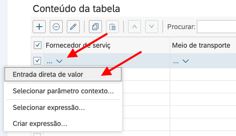 Passo 7. Vamos agora preencher nossa tabela! Clique no botão com uma seta para baixo, para abri o menu de opções e selecione a opção Entrada direta de valor.